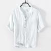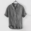 Men's Casual Stand Collar Pullover Shirt Retro Thin Cotton Linen T-shirt Top