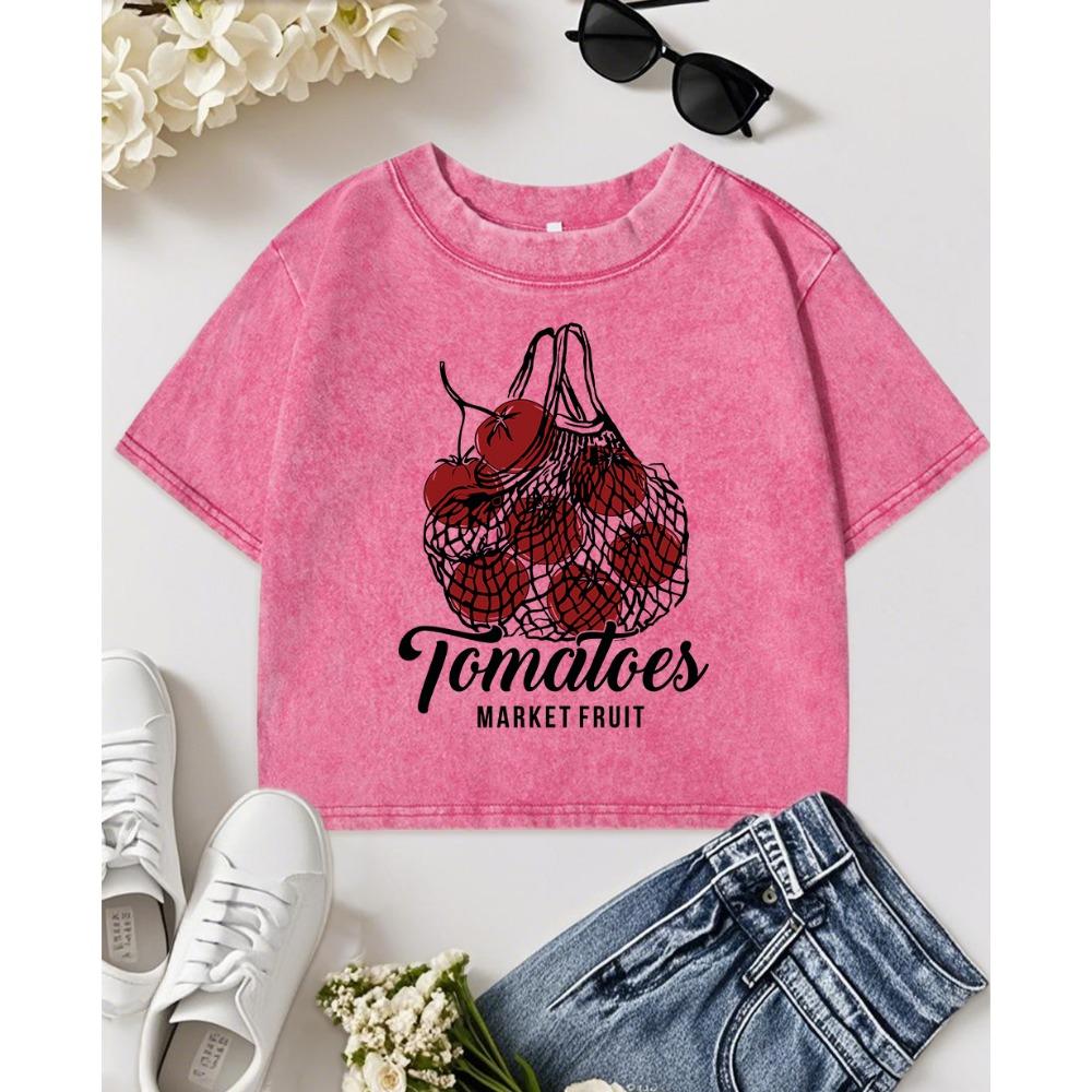 Tomatoes Market Fruit Printing Washed T Shirts Women Slim Casual T-Shirt Fitness Y2K Clothing Woman Short Sleeve