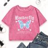 Blue Butterfly Art Letter Printed Washed T-Shirt Women Slim Cotton T Shirts Crop Y2K O-Neck Clothes Casual Top — buy online with free worldwide shipping!