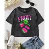 Fruit Strawberry Cherry Kiwi Print Washed T-Shirt Women Slim Y2K Crop T Shirts Cotton Summer Tops O-Neck Short Sleeve