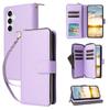 For Samsung Galaxy S25 FE Case 9 Card Slots Zipper Pocket PU Leather Phone Cover with Wrist Strap — buy online with free worldwide shipping!