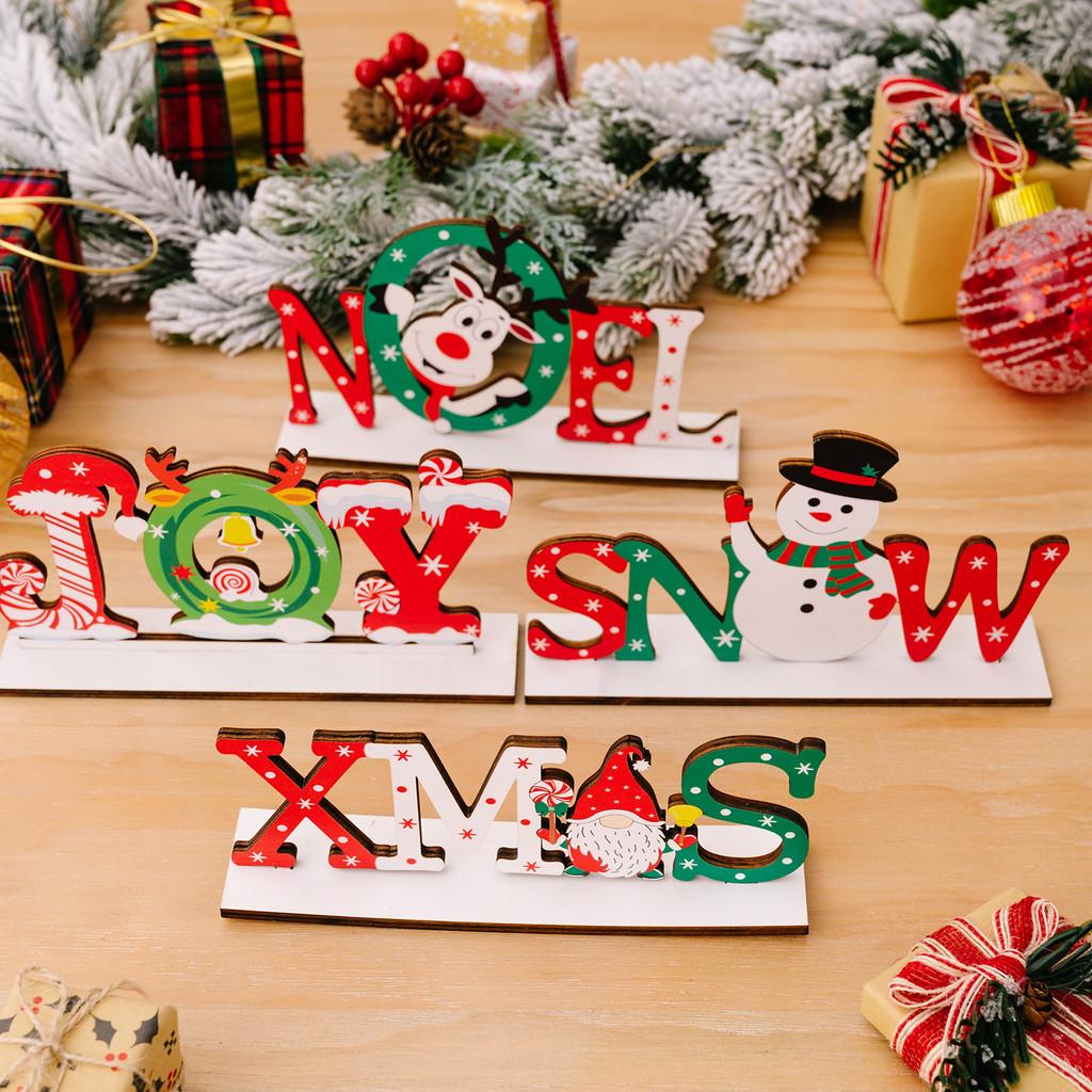 Wooden Christmas Cheerful Desk Decorations Featuring Colorful Santa Snowman Reindeer And