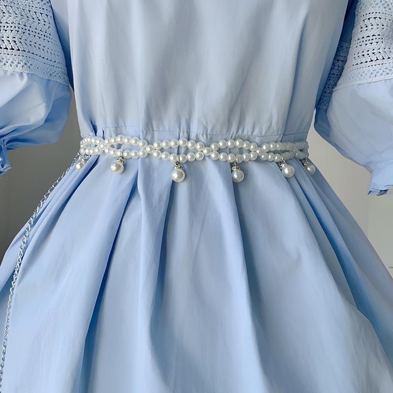 Designed for the autumn season of 2023, this waist belt is not only stylish but also practical. As the weather cools down, layering becomes essential, and this belt will ensure you achieve that perfect fit without compromising on style. Whether youre heading to a brunch date, a fall wedding, or simply running errands, the Chic White Pearl Waist Belt will keep you looking polished and fashionable.
