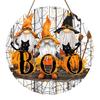 Add a spooky touch to your home with this halloween door sign. Crafted from high-quality wood, this durable sign features a unique and beautiful design that is perfect for seasonal home decoration. Hang it on your front door, room door, wall, or window to create a festive atmosphere. The ghostly seasonal charm of this round sign is enhanced by its classic Halloween-themed patterns and vibrant colors.