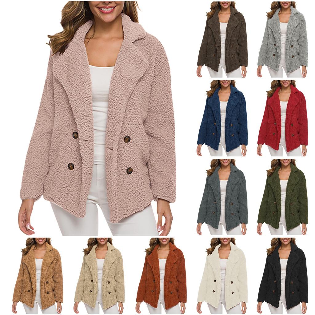Women's Winter Casual Padded Thickened Suit Collar Button Lambswool Jacket Cardigan — buy online with free worldwide shipping!