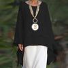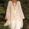 Women Fashion Plus Size Irregular Casual Linen Long Sleeve Neck Blouse