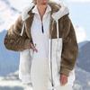 Women's Fashion Plush Zipper Long Sleeve Stitching Warm Sweater Tops Coat Winter