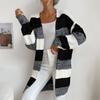 Women's Fashion Casual Long Buttonless Colorblock Sweater Cardigan Jacket