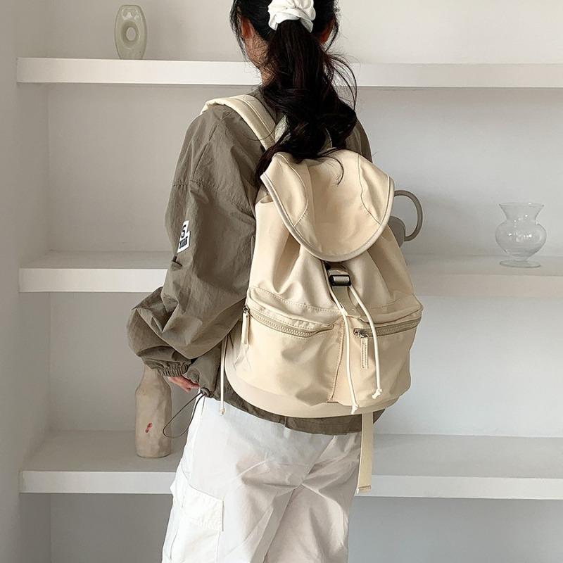 New Pull Rope Pleated Flip Student Backpack Backpack Girls Nylon Niche Large Capacity Backpack Women