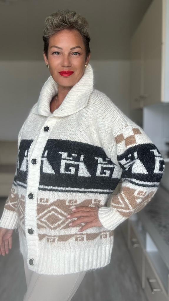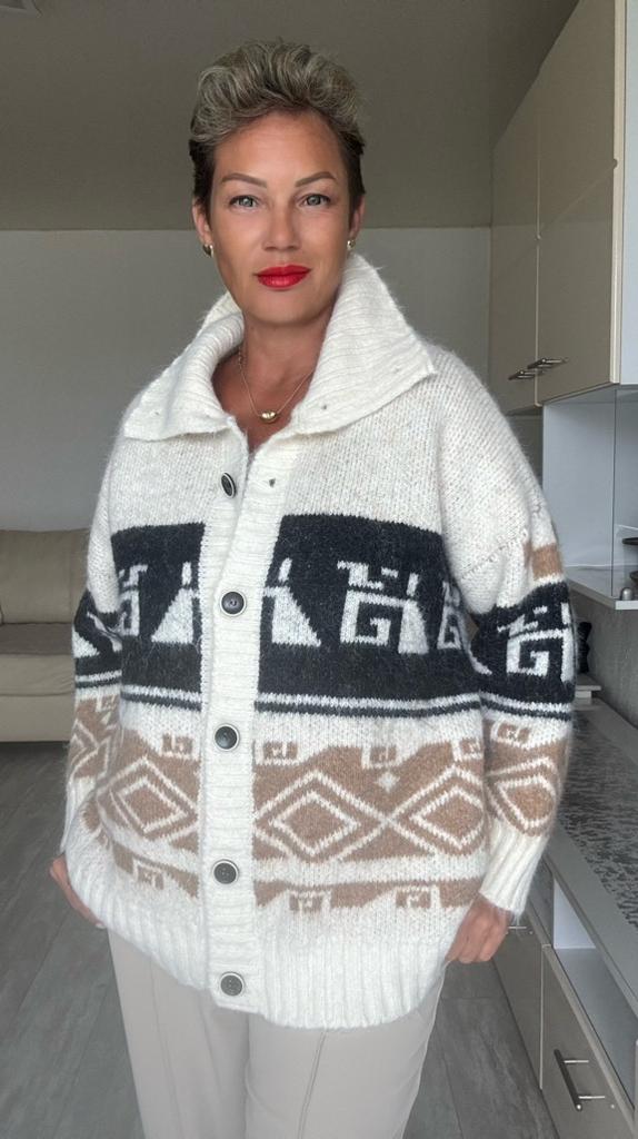 DIMANAF 2025 Plus Size Autumn Sweaters Cardigan Pockets Women Pattern Printing Buttons Sweaters Knitting Loose Sweater — buy online with free worldwide shipping!