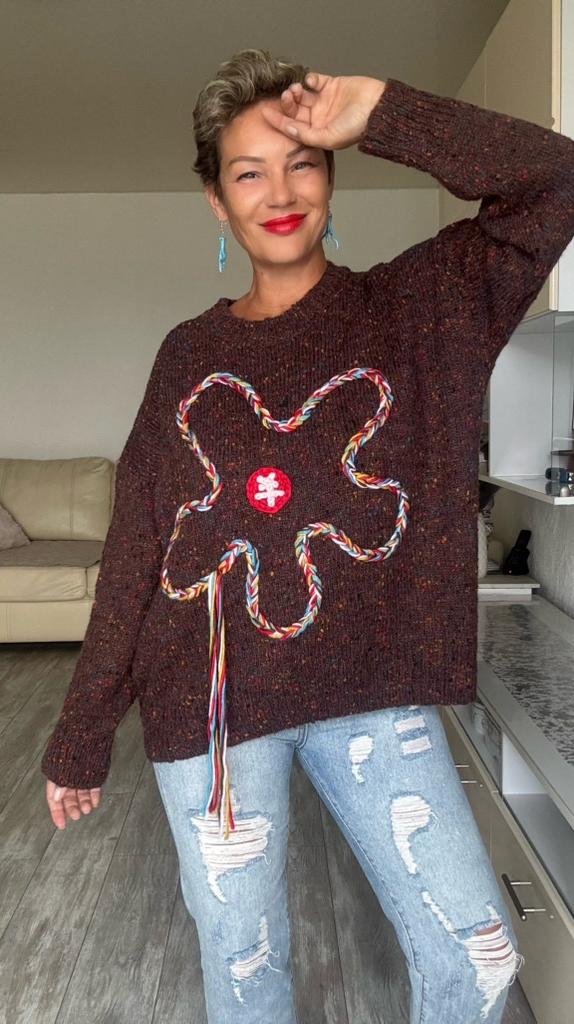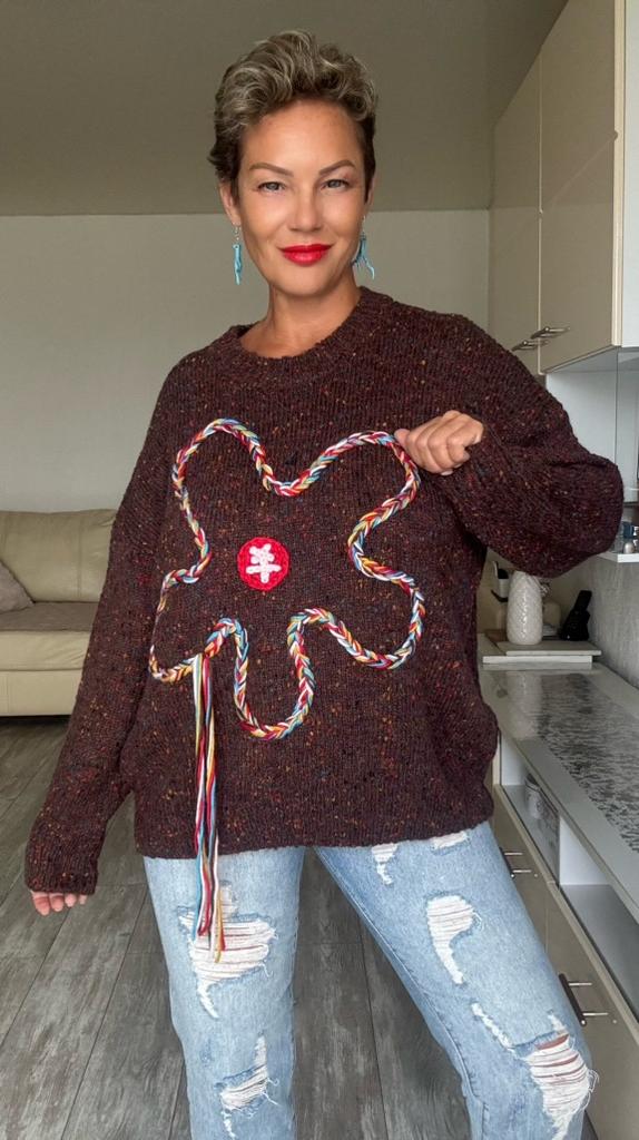 DIMANAF 2025 Autumn Women Striped New Sweaters Knitting Basic Fashion Ribbon Decoration O-Neck Style Loose Pullover Sweater — buy online with free worldwide shipping!