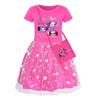 Kids Girls Anime Cartoon POP Singer Super Star Rumi Zoey Mira Print Mesh Rainbow Round Neck Casual Cotton Dress
