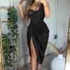 New Single-shoulder Sequined Evening Dress, Sexy Sequined Slit Evening Dress, Summer Halter Dress — buy online with free worldwide shipping!
