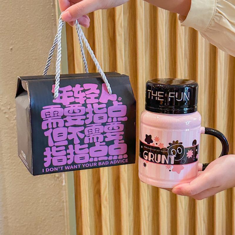 Color: Large-capacity doll cup - polka doll puppy, large-capacity doll cup - striped puppy, large-capacity doll cup - square pig, large-capacity doll cup - striped pig, large-capacity doll cup - polka doll puppy + polka doll portable gift box, large-capacity doll cup - striped puppy + polka doll portable gift box, large-capacity doll cup - square pig + polka doll portable gift box, large-capacity doll cup - striped pig + polka doll portable gift box