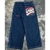 ZYLLO Baggy Jeans Y2K Clothes Men Women Harajuku Hip Hop Embroidered Vintage Blue Baggy Jeans Low Rise Wide Leg Pants