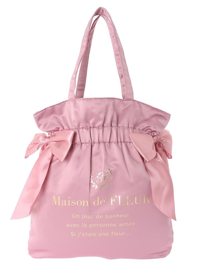 Maison De Fleur Double Ribbon Gathered Tote Pink Women's Bag,