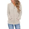 Women's Fashion Long Sleeve Solid Color Casual Ribbed Button Hoodie Top
