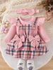 Baby Girl Clothes Newborn Infant Long Sleeve Jumpsuit with Headband Outfits Set 3pcs Bow Fall Winter 0-18 Months, for Outdoor