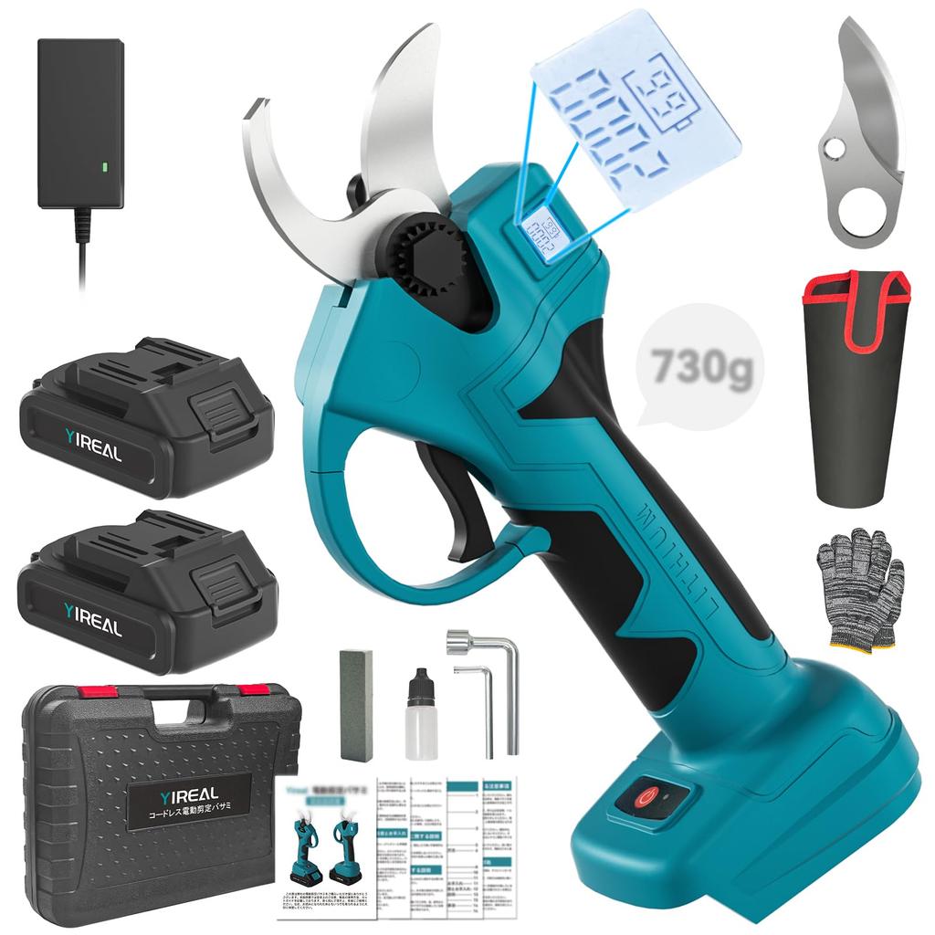 [30mm Cutting Diameter & Supervised by Yamamoto Landscape Gardening Company] Yireal's rechargeable pruning shears can easily cut branches up to 30mm in diameter. The opening can be adjusted to two positions: half-open or full-open. The small half-open opening saves time and energy, while the full-open opening makes it easy to cut thick branches. Our electric shears were developed under the supervision of Yamamoto Landscape Gardening Company to make pruning easier for gardeners. Over the past 10 years, they have been used by over 100,000 gardeners at 20,000 landscape gardening companies worldwide.