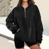 Women's Casual Fashion Long Sleeve Solid Color Zip Hooded Sweatshirt Top With Pocket