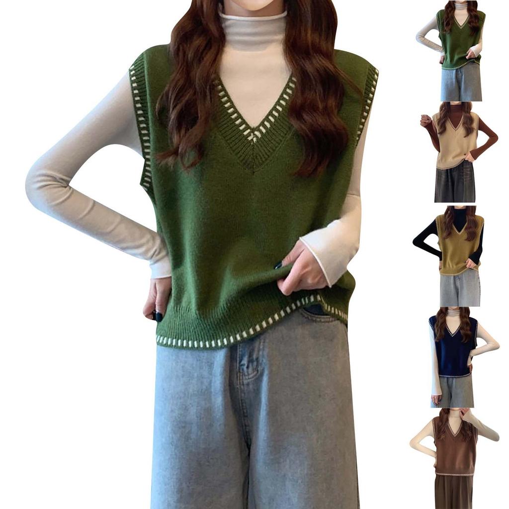 Women's V Neck Sleeveless Sweater Vest Casual Solid Color Cap Sleeve Knitted Pullover
