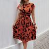 Elegant Personality Abstract Pattern Printed Pleated Dress