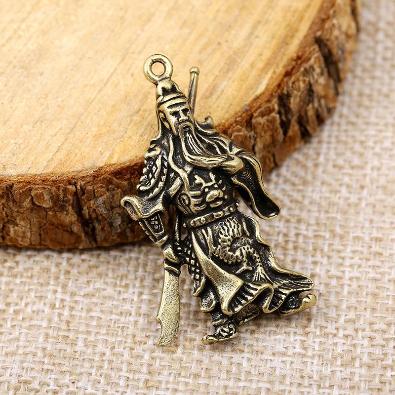 Antique Brass Guan Gong Ornament, Car Keychain Pendant, Home Brass Threshold Pendant Accessories