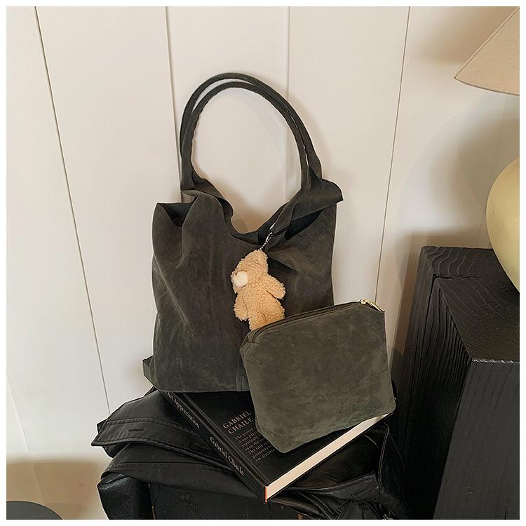 Suede bag women's large-capacity new spring and summer retro shoulder shopping bag commuter tote bag — buy online with free worldwide shipping!