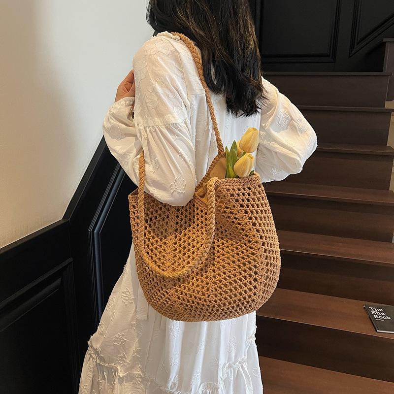 Woven bag women's large-capacity new spring and summer versatile leisure hollow shoulder vacation beach tote bag — buy online with free worldwide shipping!