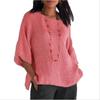 Seven Quarter Sleeve Round Neck Cotton Linen Solid Color Casual Women's Blouses & Shirts
