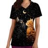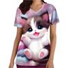 Clinical Uniform Cute Cat Cartoon Print Fashion Short Sleeve Casual V-Neck Vet Medical Clothes Women's T-shirts