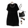 Little Gao End Sanzhai High-Elastic Dress! Women's Short-Sleeved Rhinestone Square Collar over-the-Knee Dress Breathable Summer — buy products online with free worldwide shipping!