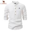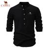 CAMEL 2025 Spring/Summer Embroidery New Large Stand Up Collar Shirt Men's Solid Color Casual Men's Long Sleeve Shirt — buy online with free worldwide shipping!