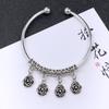 Retro Ethnic Style Tibetan Silver Bracelet Women's Versatile Fashion Bell Flower Pendant Adjustable Bracelet with Accessories