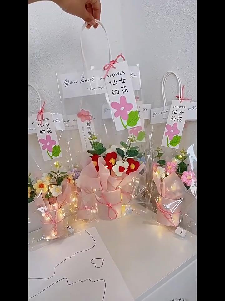 New Cute Bouquet Finished Product Crochet Ornaments Hand Knitted Flower Crochet Flower Bouquet