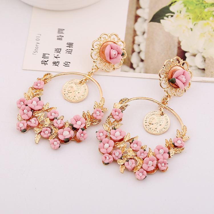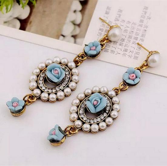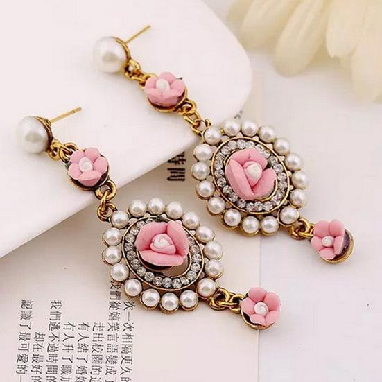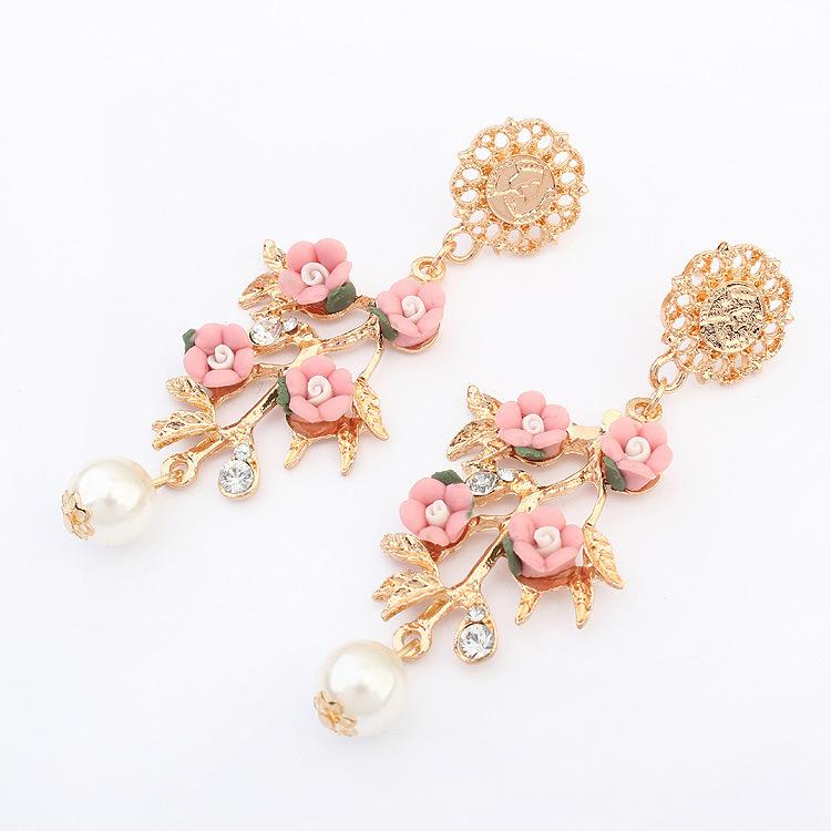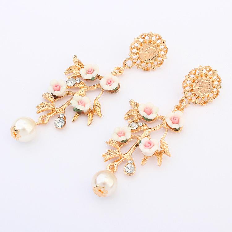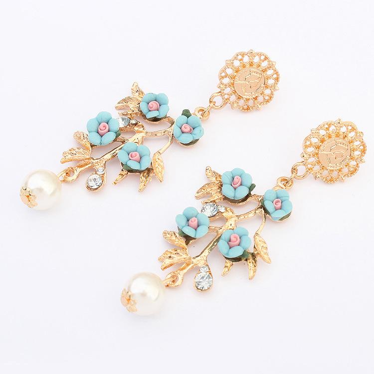Fulok court luxury stud earrings femininity exaggerated pearl flower earrings personalized long holiday earrings — buy online with free worldwide shipping!