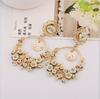 Fulok Court Luxury Stud Earrings Femininity Exaggerated Pearl Flower Earrings Personalized Long Holiday Earrings