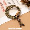 Multi-circle Green Sandalwood Bracelet, Men's and Women's Cultural Play Plate Play Bracelet, Agate Wooden Buddha Beads Stacked with Accessories