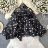 Stylish Ruffles Chiffon Shirt Women's Summer New Lantern Sleeve Shoelace Slim Looking Tie-Dye Inner Suspender Tops