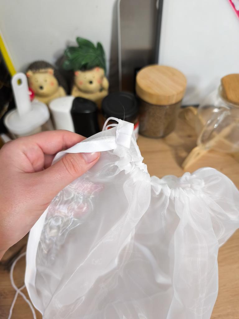 👩🍳 The nylon net with drawstring for tightening is available in three different sizes and was delivered to me in Austria very well packaged and consolidated after a two-week delivery time.. 👩🍳 The net is excellent for draining vegetables or shaping dumpling fillings. I use it to drain the washed salad and I'm thrilled with the value for money 🔝. Absolutely recommendable 👍! Music 🎶 from Capcut pro