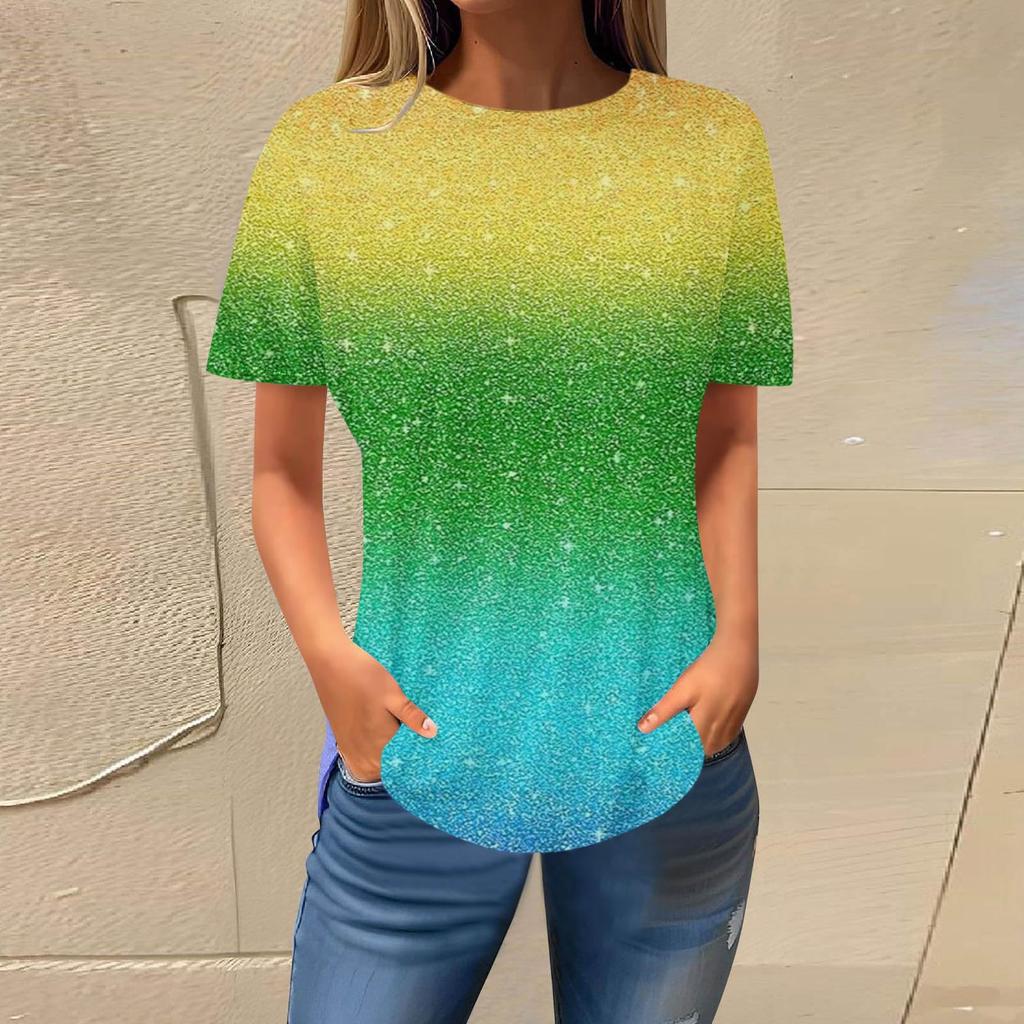 Summer Round Neck 3D Gradient Glitter Print Top Fashionable Casual Short Sleeved Women's T-shirts — buy online with free worldwide shipping!