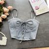 Pure Desire Sexy Denim Camisole Female Sexy with Breast Pad Slim-Fit All-Matching Short Beauty Back Chic Tied Top