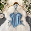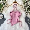 Gyaru Sexy Shoulder Strap Chest Pad Halter Top Women Summer Drawstring Slim Fit Slimming Irregular Short Top