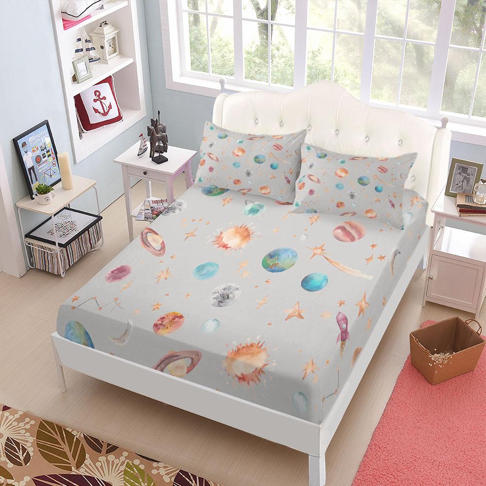 Seamless Space Exploration Fitted Sheet Set King Queen Double Full Size Bed Linen Set