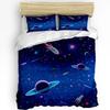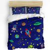 Outer Space Cartoon Cute Spaceship Rocket Duvet Cover with Pillow Case 3pcs Bedding Set Quilt Cover Double Bed Home Textile