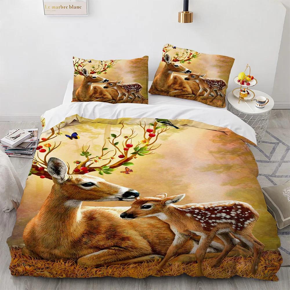 Deer Duvet Cover Set Wild Animals Flowers Pattern Polyester Bedding Set King Twin Full Size Comforter Cover For Kids Boys Girls — buy online with free worldwide shipping!