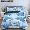 Bule Dolphin Whale King Queen Duvet Cover Underwater World Bedding Set Cartoon Sea Animal Comforter Cover Polyester Quilt Cover