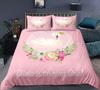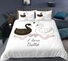 Swan Duvet Cover Set Rose Crown Comforter Cover Polyester Bedding Set Sweet Girl Romantic Quilt Cover Pink Red King Twin Size