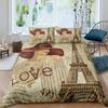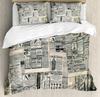 Old Newspaper Duvet Cover Set Vintage French Bedding Set Brown Quilt Cover For Kids Boys Girls Teens Polyester Comforter Cover