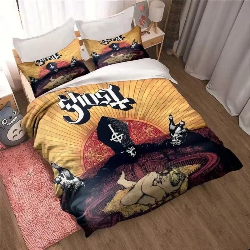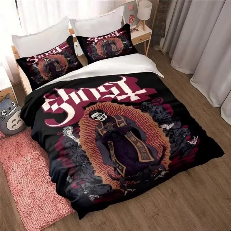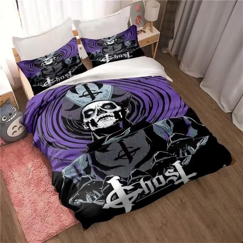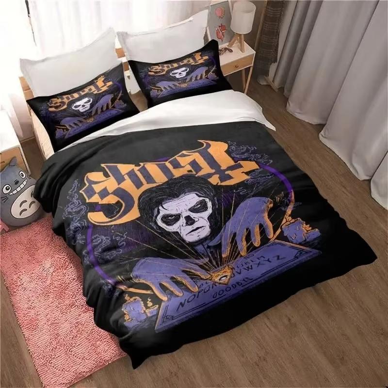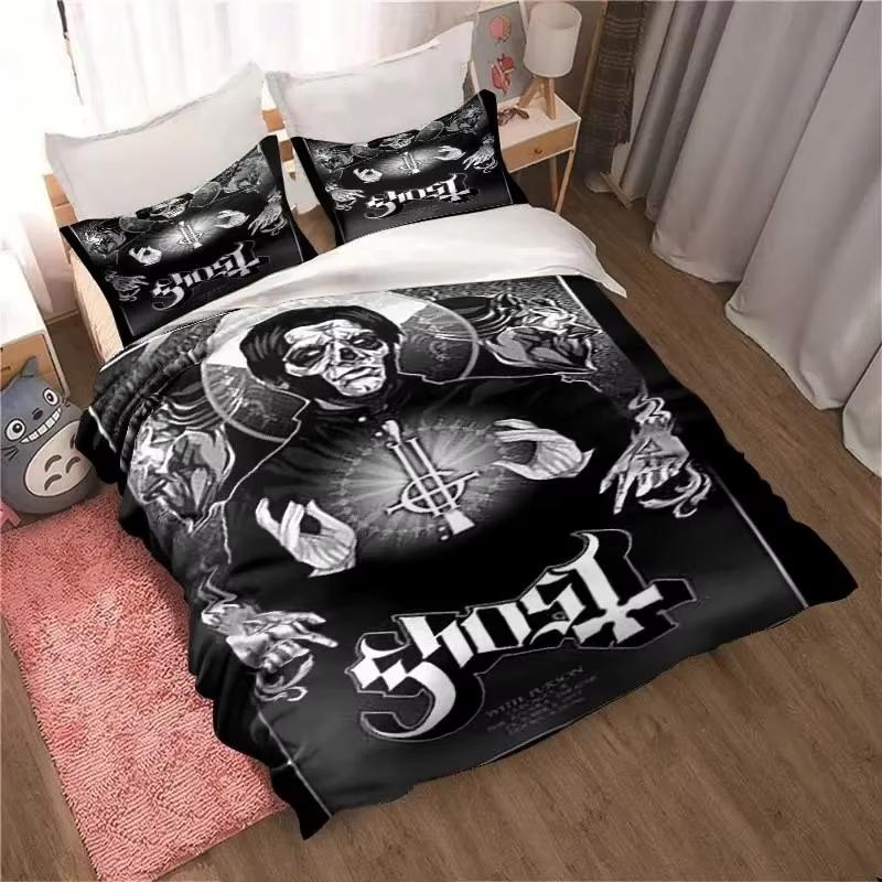 Rock Band Ghost Pattern 3D Printed Comforter Set Home Bedding 3 Piece Soft and Comfortable Microfiber Single/Double Set